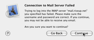 6. VERY IMPORTANT! Do not enter your current password! Why? Because it will be transmitted over the internet unencrypted, and someone could get it from you! We need to setup some things before it will be encrypted. Enter an incorrect password here. You will occasionally get a dialog box requesting your password when mail attempts to check your mail. Ignore it until you finish setting up the secure connections. Just hit cancel when these messages appear.