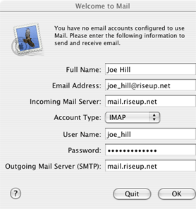 6. Enter your full email address, i.e. joe_hill@riseup.net.